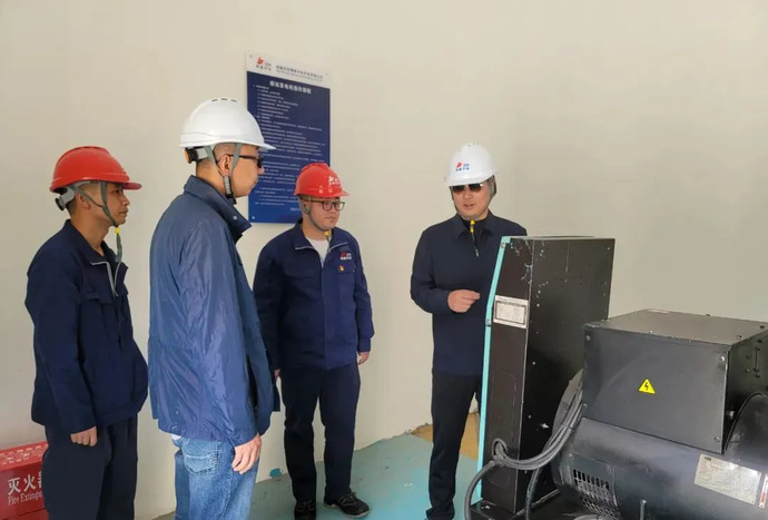 集團黨委副書(shū)記、副董事長(cháng)、總經(jīng)理劉剛(右一)嘎堆水電站開(kāi)展安全生產(chǎn)檢查。