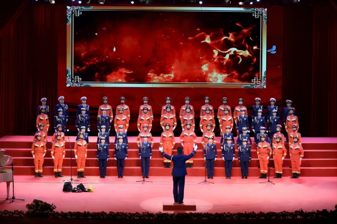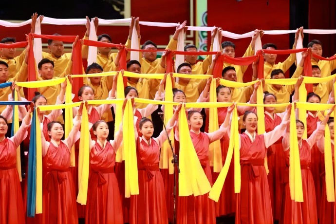 “朋友!你到過(guò)黃河嗎?你渡過(guò)黃河嗎?你還記得河上的船夫拼著(zhù)性命和驚濤駭浪搏戰的情景嗎?如果你已經(jīng)忘掉的話(huà),那么你聽(tīng)吧!”由58人組成的西藏開(kāi)投集團參賽隊以一曲《保衛黃河》,唱響了黨領(lǐng)導全國人民走過(guò)的風(fēng)雨歷程,唱出了戰勝敵人、奪取勝利的激情。