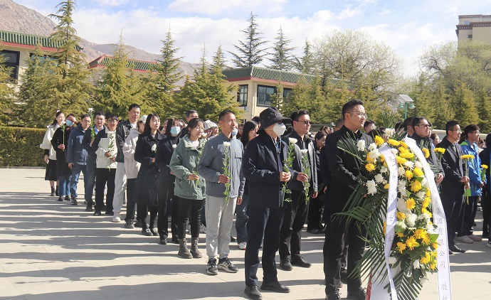 拉薩市烈士陵園內松柏蒼翠、莊嚴肅穆。在革命烈士紀念碑前,參加活動(dòng)的全體黨員職工重溫了入黨誓詞、合唱國歌并敬獻鮮花、清掃陵園,向革命先輩們致以最崇高的敬意和表達無(wú)盡哀思與懷念。