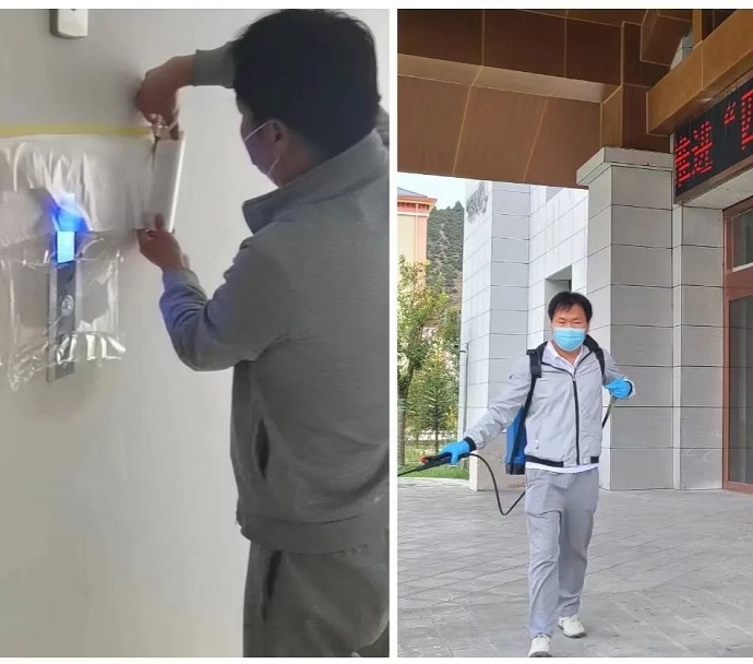 此次疫情發(fā)展伊始,酒店周邊已多處發(fā)生感染病例,距最近的高風(fēng)險區域不到100米。孫海崗帶領(lǐng)部門(mén)人員,沖在“疫”線(xiàn),堅持每天對酒店各個(gè)區域進(jìn)行2次消殺,不留死角。由于酒店占地面積大,單體建筑分布較廣,完成一次全面徹底消殺用時(shí)需要2小時(shí)以上。孫海崗深知消殺工作的重要性,在工作過(guò)程中任勞任怨,埋頭苦干。