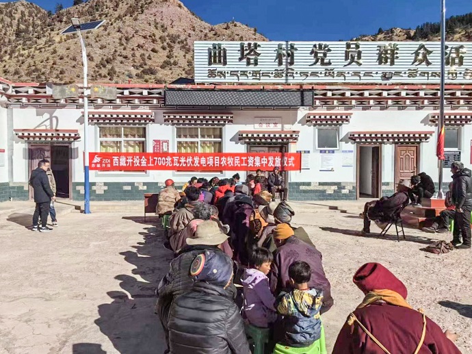 12月21日,西藏開(kāi)投金上光伏能源有限公司舉行農牧民工資發(fā)放儀式,為昂多鄉曲塔村農牧民185人發(fā)放工資報酬近243萬(wàn)元。