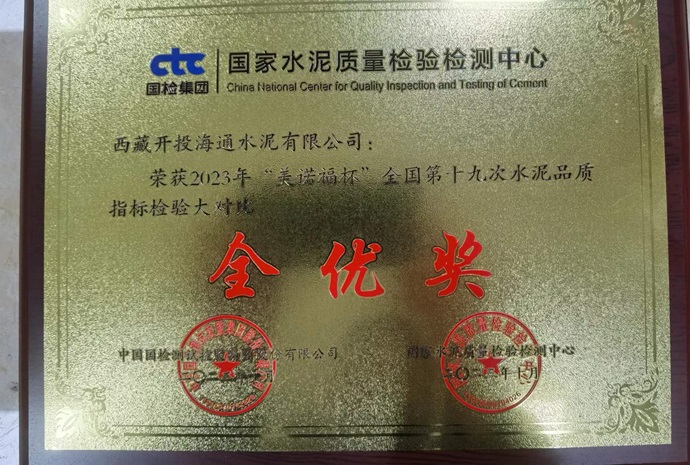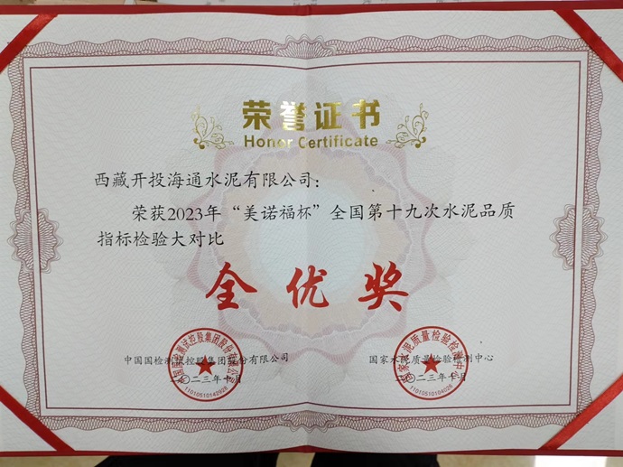 西藏開(kāi)投海通水泥公司喜獲全國水泥檢驗大對比“全優(yōu)獎”