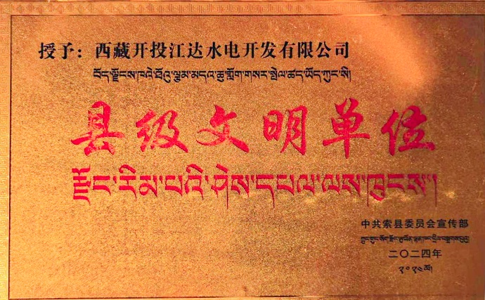 西藏開(kāi)投江達水電開(kāi)發(fā)有限公司獲評縣級文明單位