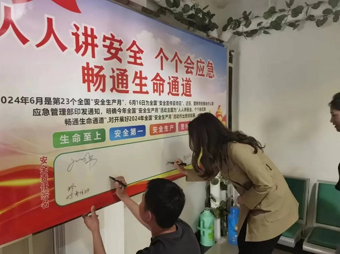 會(huì )議以《深入學(xué)習貫徹習近平關(guān)于應急管理的重要論述》為重點(diǎn)開(kāi)展集中宣講和專(zhuān)題研討,宣貫了《西藏自治區安全生產(chǎn)條例》等相關(guān)文件精神,觀(guān)看了“安全生產(chǎn)月”主題宣傳片、《安全生產(chǎn) 責任在肩》警示教育片,切實(shí)提升干部職工安全責任意識和應急避險能力。會(huì )議結束后,舉行了主題展板簽名儀式,動(dòng)員全體員工履職擔當,自覺(jué)把安全生產(chǎn)工作記在心上、抓在手上、扛在肩上、落在實(shí)處,與會(huì )人員在主題展板前簽字承諾。