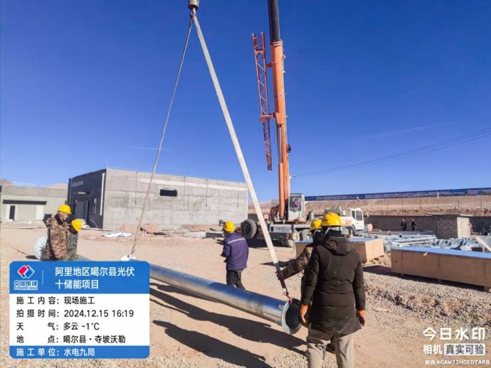 ▲噶爾光伏發(fā)電項目,現場(chǎng)施工人員開(kāi)展避雷針吊裝作業(yè)。
