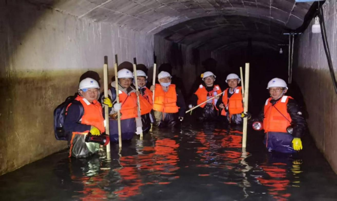 旁多水利樞紐工程灌溉輸水洞排查現場(chǎng)。