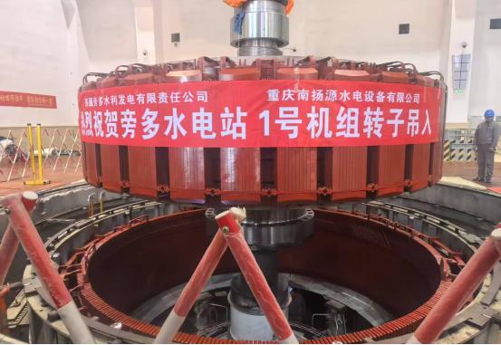 4月29日18:16,隨著(zhù)現場(chǎng)指揮一聲令下,旁多水電站1號機組A級檢修現場(chǎng),重達186噸的轉子在大型起重設備的牽引下,緩緩上升并平穩地落入指定位置,標志著(zhù)1號機組A級檢修全面進(jìn)入回裝階段。