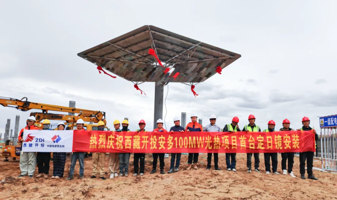 6月16日,西藏開(kāi)投安多土碩100MW光熱+800MW光伏一體化項目光熱電站首臺定日鏡成功下線(xiàn)并順利完成安裝,這是項目推進(jìn)的關(guān)鍵里程碑,標志著(zhù)全球海拔最高、西藏首個(gè)塔式光熱電站工程邁出標志性一步。
