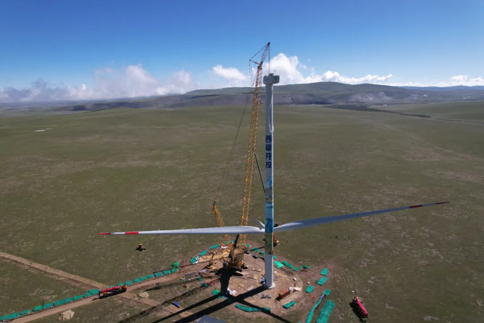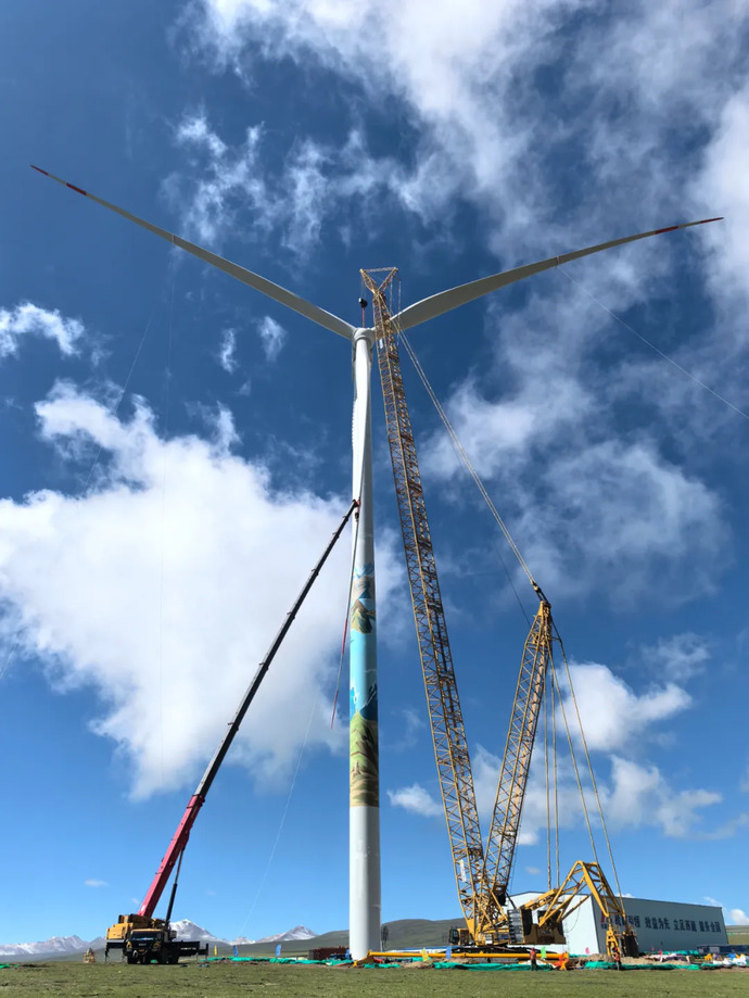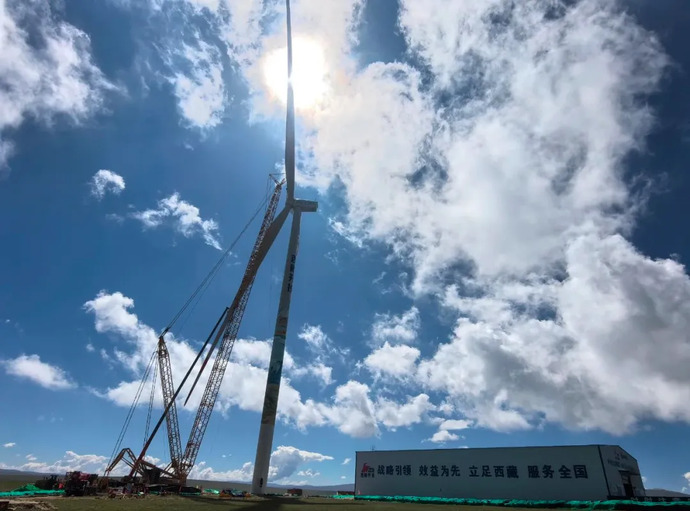 西藏在建最大風(fēng)電項目完成首臺風(fēng)力發(fā)電機組吊裝