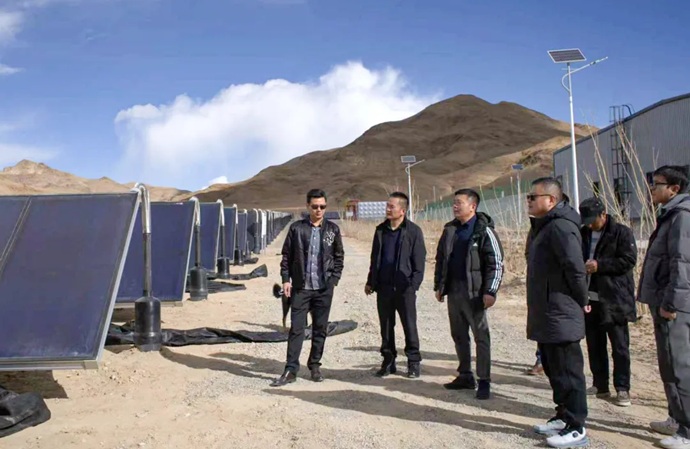 10月25日,西藏阿里地區兆源同硼礦業(yè)科技公司常務(wù)副總經(jīng)理劉曉亮赴西藏開(kāi)投日土縣城集中供暖項目現場(chǎng)考察,西藏開(kāi)投清潔能源供暖公司董事長(cháng)姚輝等陪同,雙方就高原地區太陽(yáng)能供暖技術(shù)及項目合作事宜進(jìn)行交流。