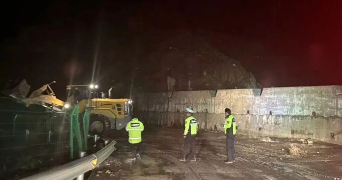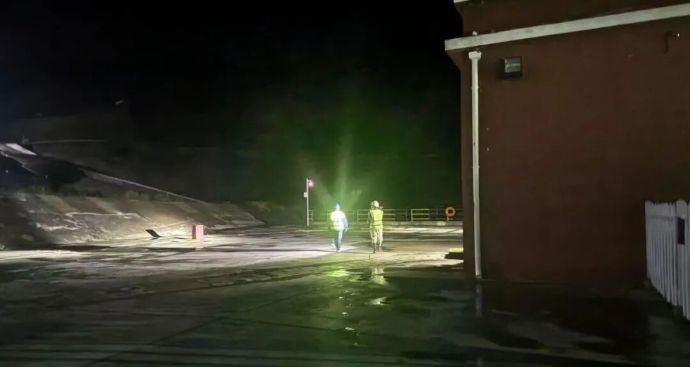 現(xiàn)場(chǎng)工作人員深夜進(jìn)行主汛期庫周公路清通作業(yè)。
