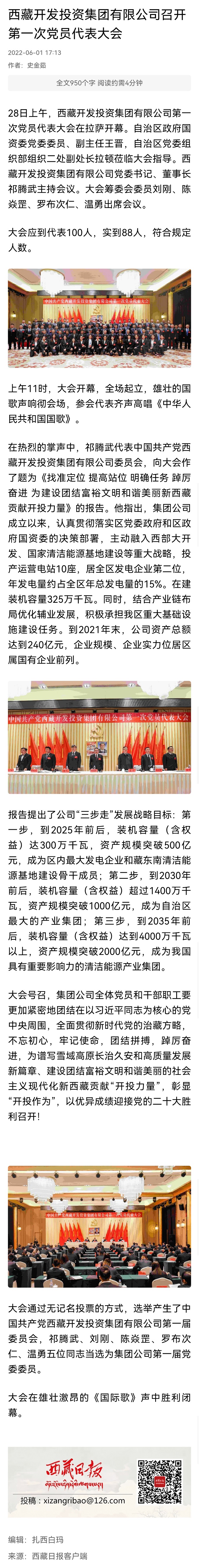 中國共產(chǎn)黨西藏開(kāi)發(fā)投資集團有限公司 第一次黨員代表大會(huì )