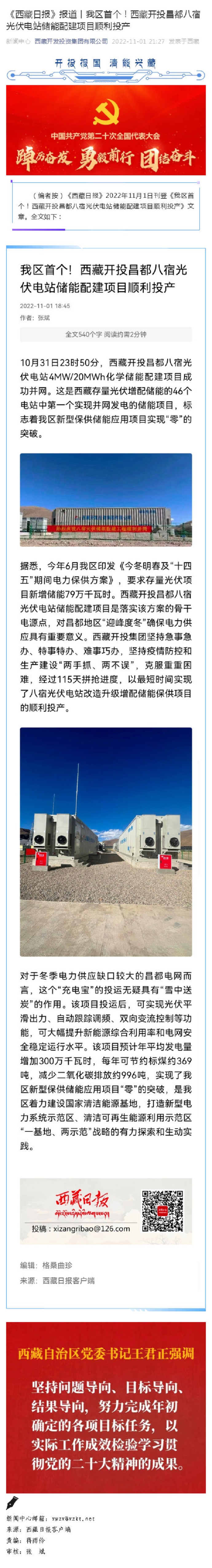 《西藏日報》報道丨我區首個(gè)!西藏開(kāi)投昌都八宿光伏電站儲能配建項目順利投產(chǎn)