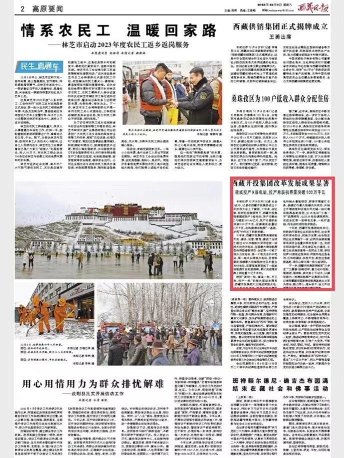 編者按:12月9日,西藏日報第二版高原要聞欄目報道了《西藏開(kāi)投集團改革發(fā)展成果顯著(zhù)建成投產(chǎn)9座電站,投產(chǎn)總裝機容量突破100萬(wàn)千瓦》文章。全文如下: