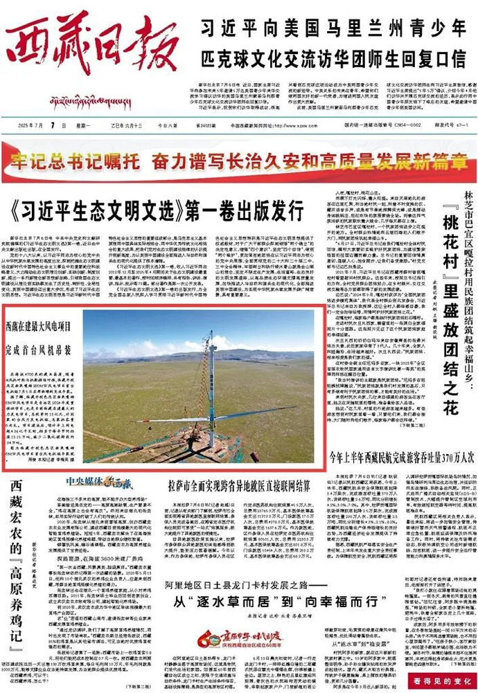 媒體報道丨西藏在建最大風(fēng)電項目完成首臺風(fēng)力發(fā)電機組吊裝