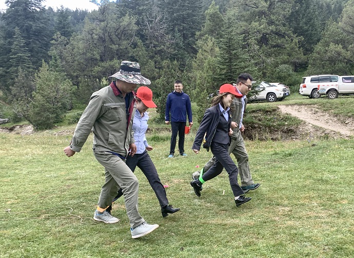 座談結束后,全體黨員面向黨旗莊嚴宣誓,重溫入黨誓詞,激勵永葆入黨初心。最后,兩支部開(kāi)展了以“重溫紅色”為主題的戶(hù)外團建活動(dòng),通過(guò)重走長(cháng)征路、黨建知識問(wèn)答、紅色詞匯你比我猜、兩人三足等活動(dòng)進(jìn)一步增進(jìn)支部交流互動(dòng)?;顒?dòng)現場(chǎng),參賽隊員充分發(fā)揚團隊精神,積極參與,精誠合作,加油聲、吶喊聲、歡呼聲此起彼伏。