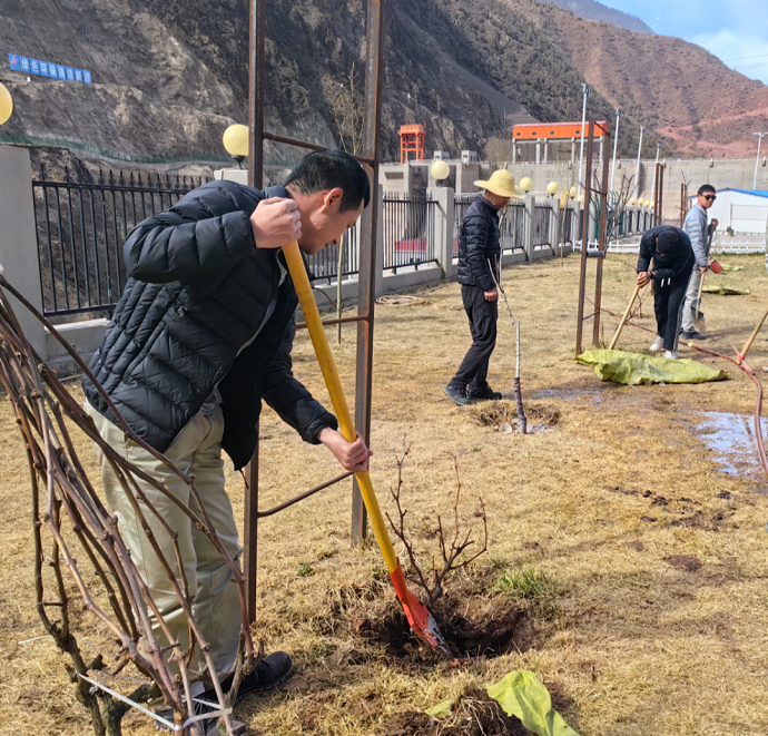春風(fēng)吹新綠,植樹(shù)種花正當時(shí)。在一年一度的“3.12”植樹(shù)節來(lái)臨之際,為進(jìn)一步增強職工對自然環(huán)境的保護意識,感受美化環(huán)境的意義,激發(fā)熱愛(ài)生活、熱愛(ài)自然家園的情感,助力電站創(chuàng )建美好環(huán)境。3月13日,金河水電公司黨支部開(kāi)展“種下綠色 創(chuàng )美好環(huán)境”主題黨日活動(dòng)。