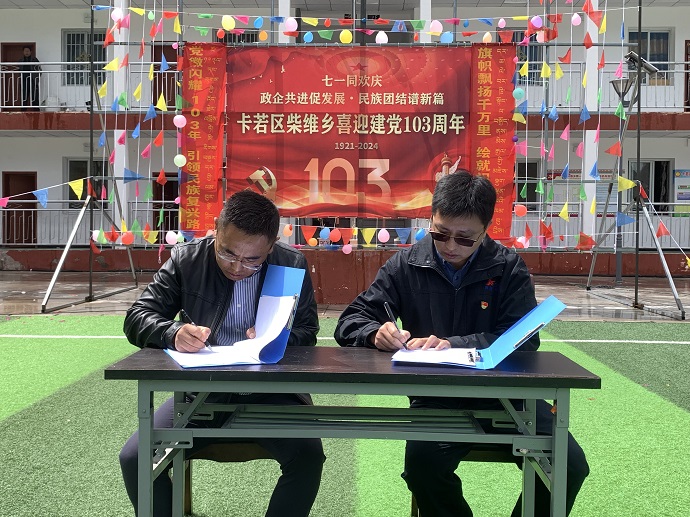 活動(dòng)上,觀(guān)看了文藝表演,參加了“黨史、黨紀、普法”知識問(wèn)答,向“光榮在黨50年”的老黨員頒發(fā)紀念章及慰問(wèn)金,與柴維鄉人民政府簽訂了《2024年卡若區柴維鄉人民政府與西藏開(kāi)投果多水電有限公司政企聯(lián)動(dòng)促團結共發(fā)展協(xié)議書(shū)》。果多水電公司黨支部書(shū)記、董事長(cháng)、總經(jīng)理宋亞?wèn)|表示,果多水電公司將秉持“建設一座電站、帶動(dòng)一方經(jīng)濟、保護一片環(huán)境、造福一方百姓、共建一方和諧”的理念,進(jìn)一步強化內部管理,保障安全生產(chǎn)運行,不斷提升企業(yè)效益,積極履行社會(huì )責任,集聚資源惠及群眾,深化地企合作共贏(yíng)發(fā)展,為建設團結富裕文明和諧美麗的社會(huì )主義現代化新西藏做出更大貢獻。