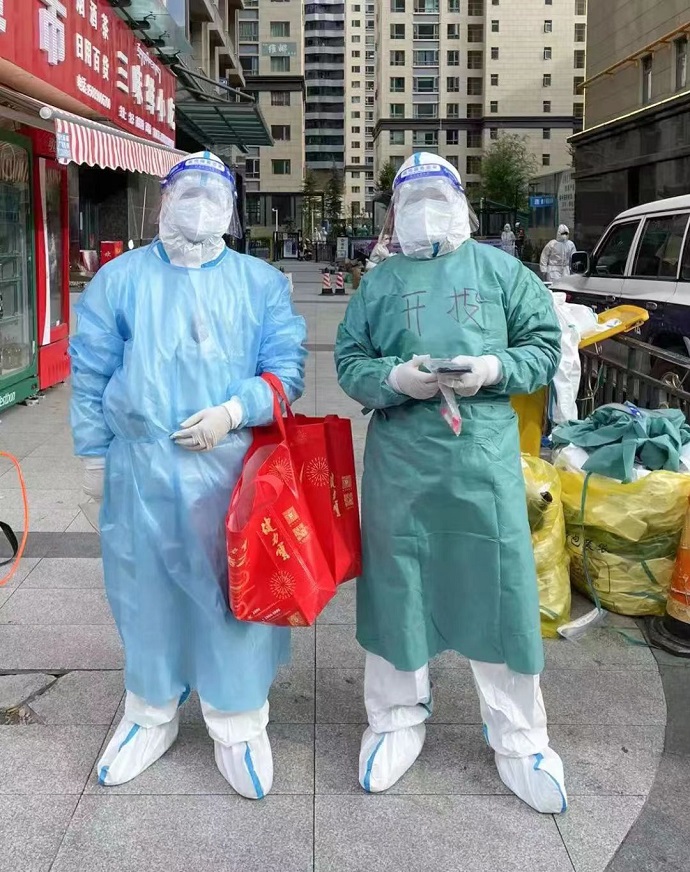 積極參加社區(qū)疫情防控工作。為積極響應(yīng)區(qū)政府國資委《關(guān)于配合做好疫情防控工作的緊急通知》有關(guān)要求,置業(yè)公司丁宗平、張峰偉兩名青年職工,經(jīng)所在單位同意,并向集團公司疫情防控辦備案后,積極參加柳梧新區(qū)管委會組織的社區(qū)志愿服務(wù)活動,全身心投入體溫監(jiān)測、秩序維護、信息登記、防控科普、物資分發(fā)、環(huán)境消殺等工作,展現(xiàn)了開投青年的責(zé)任與擔(dān)當。