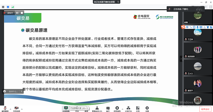 講座就“碳中和”國際背景、國家“碳達峰”“碳中和”目標和政策進(jìn)行了深入解讀。對自愿減排項目的開(kāi)發(fā)路徑、重點(diǎn)項目碳排放的核算、碳交易市場(chǎng)建設以及國際綠證開(kāi)發(fā)等相關(guān)概念與實(shí)施的基本原則進(jìn)行了講解與答疑。