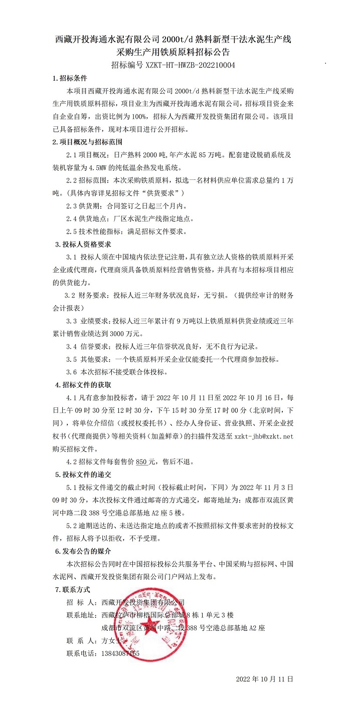 采購生產(chǎn)用鐵質(zhì)原料招標公告