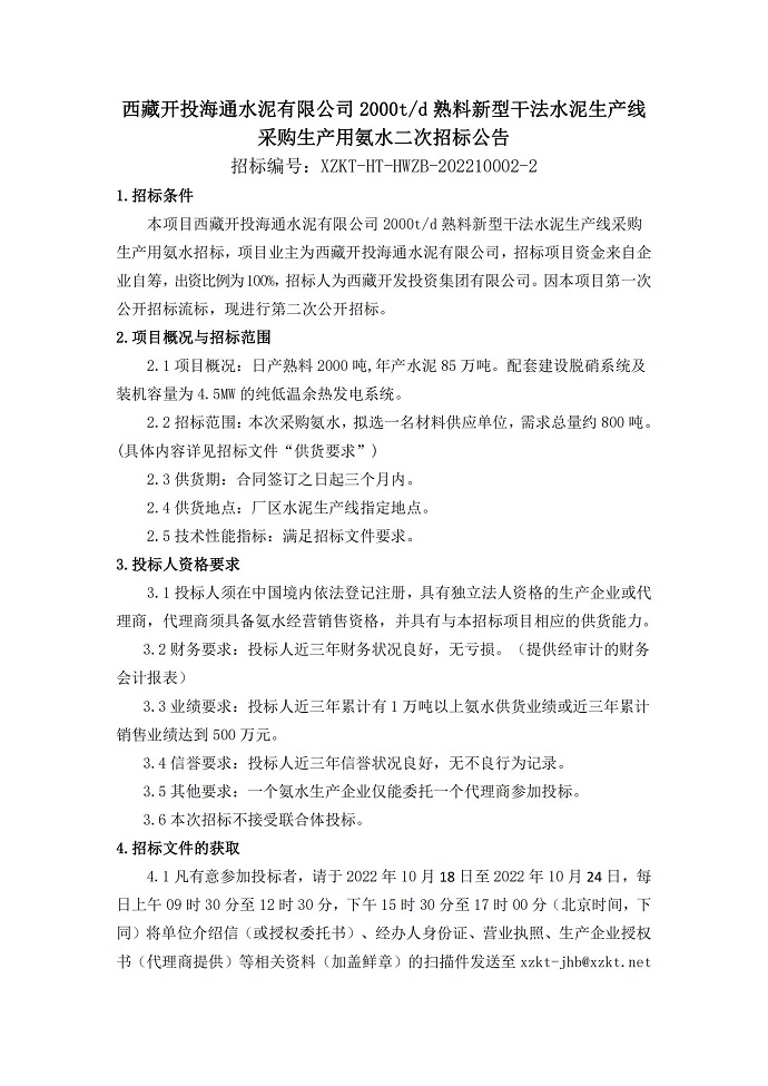 采購生產(chǎn)用氨水二次招標公告