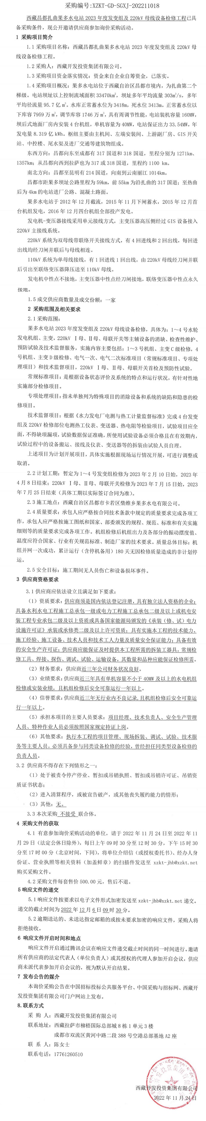 西藏昌都扎曲果多水電站2023年度發(fā)變組及