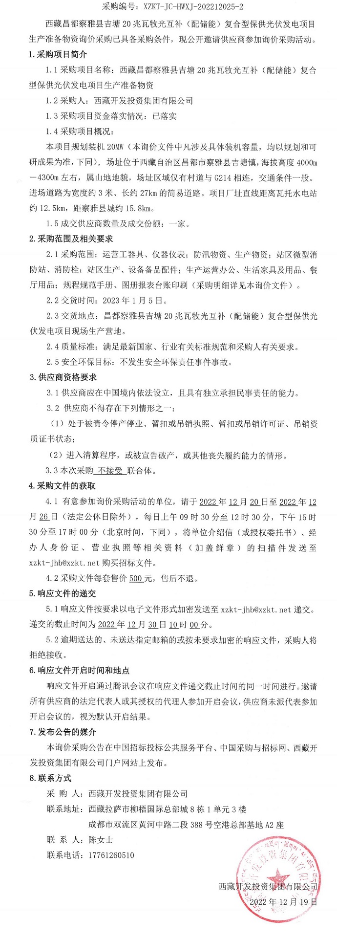 生產(chǎn)準備物資詢(xún)價(jià)采購二次公告
