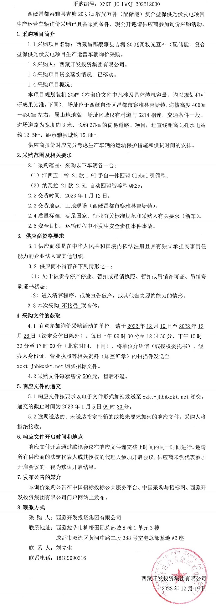 光伏發(fā)電項目生產(chǎn)運營(yíng)車(chē)輛詢(xún)價(jià)采購公告
