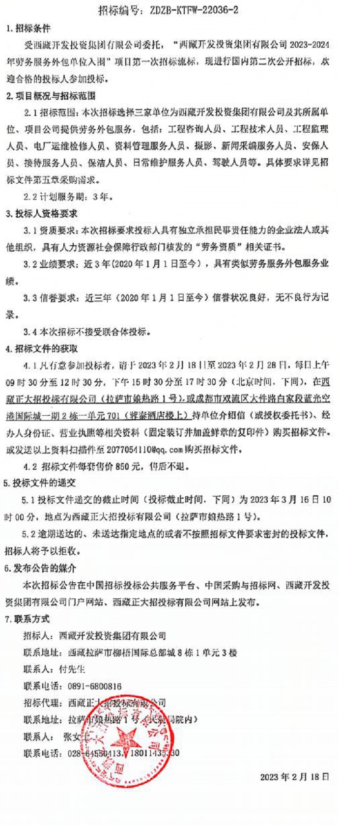 西藏開(kāi)發(fā)投資集團有限公司2023-2024年勞務(wù)服務(wù)外包單位入圍招標公告