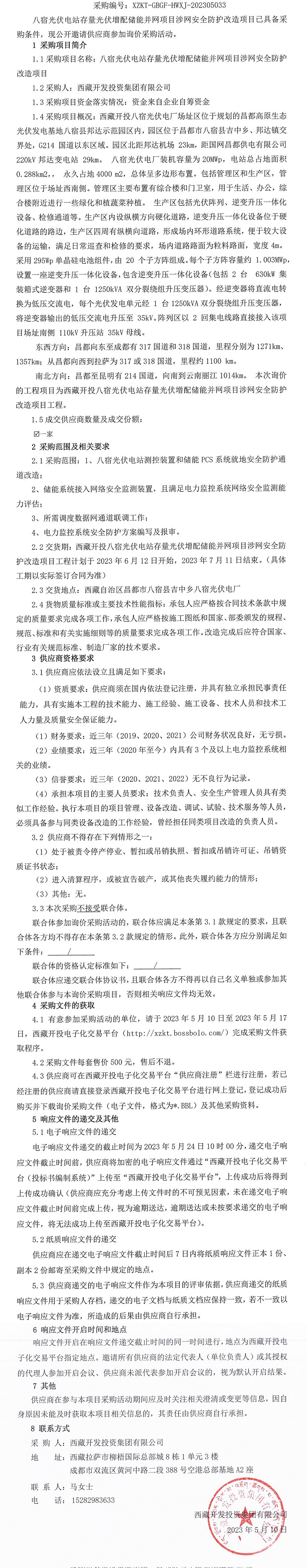 八宿光伏電站存量光伏增配儲能并網(wǎng)項目涉網(wǎng)安全防護改造項目詢(xún)價(jià)采購公告