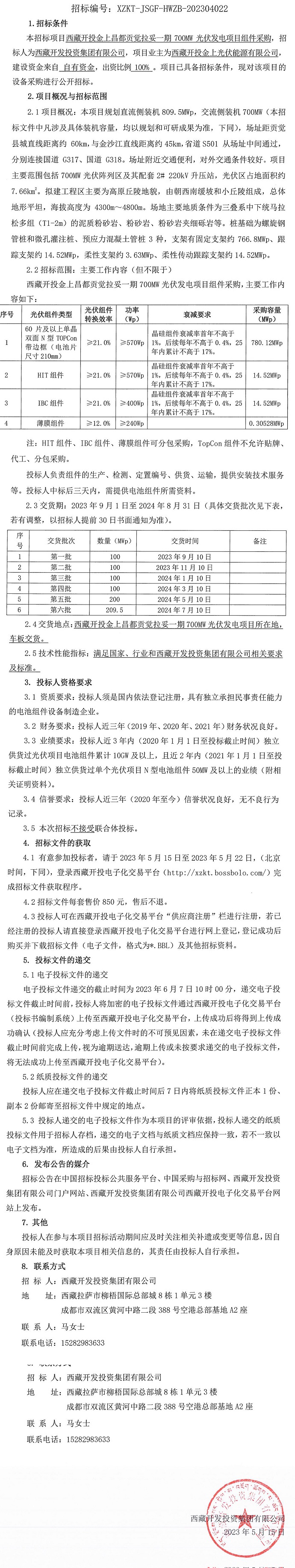 西藏開(kāi)投金上昌都貢覺(jué)拉妥一期700MW光伏發(fā)電項目組件采購招標公告