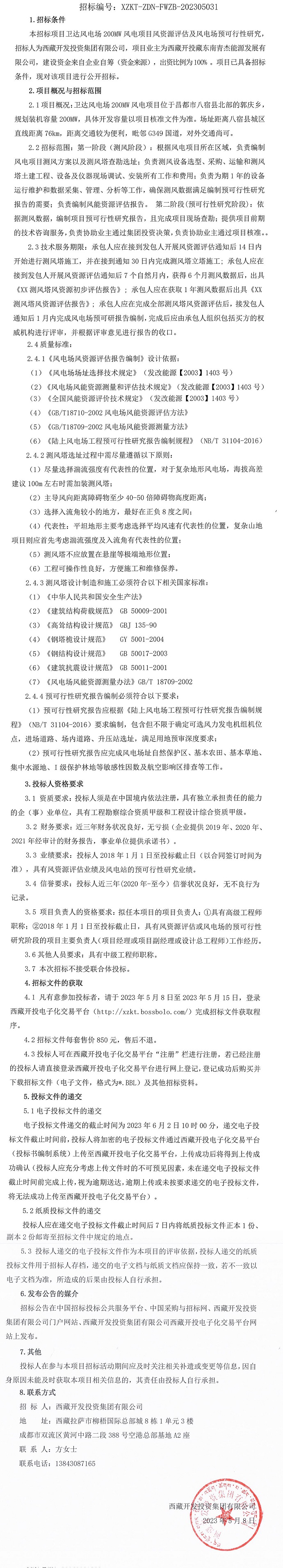 衛達風(fēng)電場(chǎng)200MW風(fēng)電項目風(fēng)資源評估及風(fēng)電場(chǎng)預可行性研究招標公告