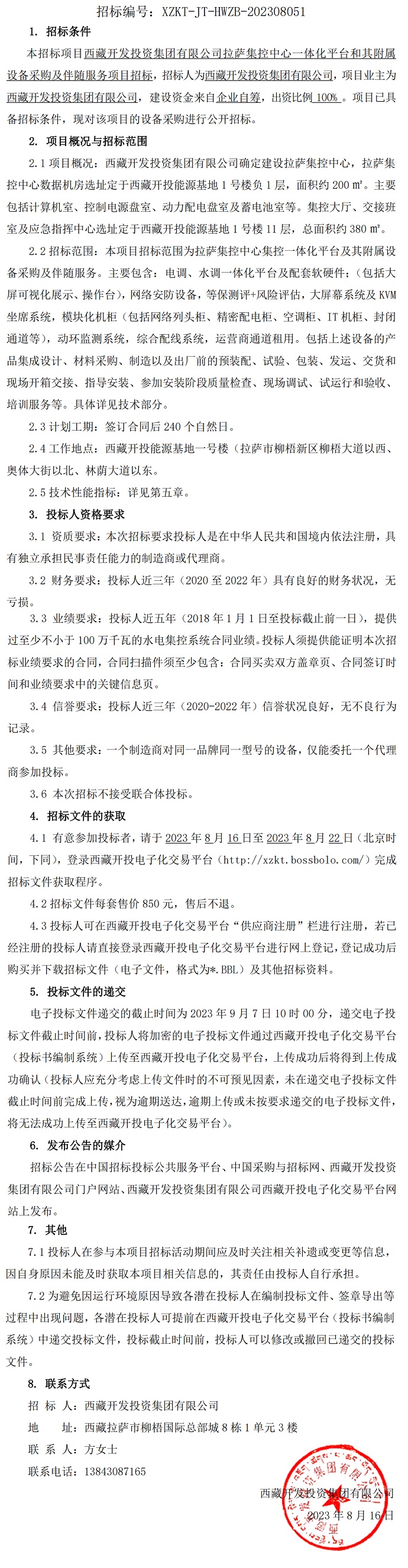 西藏開(kāi)發(fā)投資集團有限公司拉薩集控中心一體化平臺和