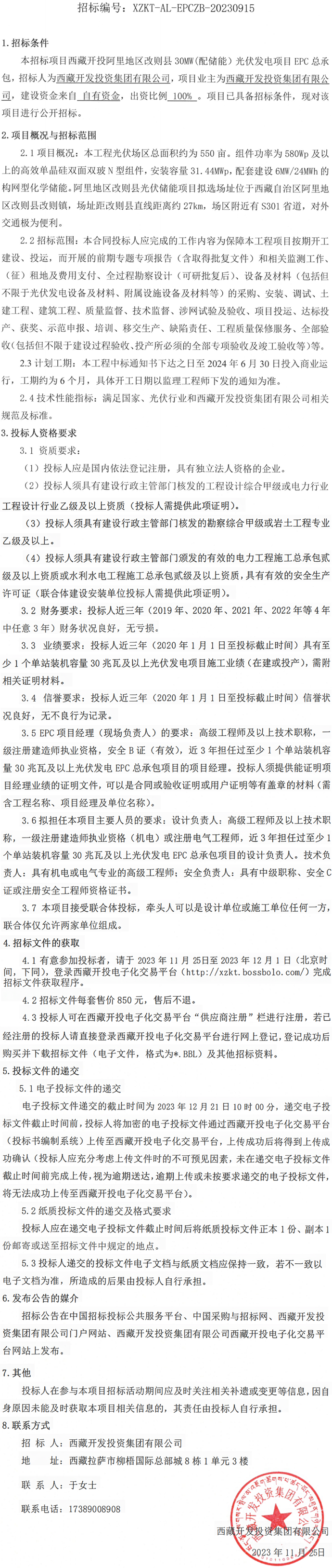 西藏開(kāi)投阿里地區改則縣30MW(配儲能)光伏發(fā)電項目EPC總承包招標公告