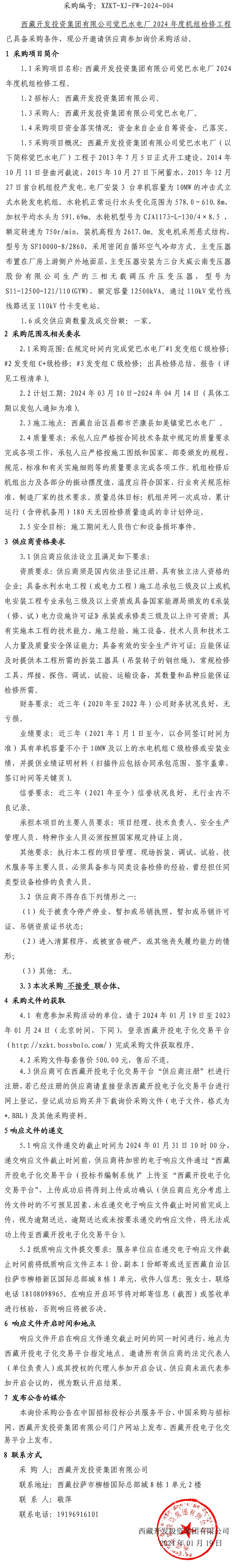 西藏開(kāi)發(fā)投資集團有限公司覺(jué)巴水電廠(chǎng)2024年度機組檢修工程詢(xún)價(jià)采購公告
