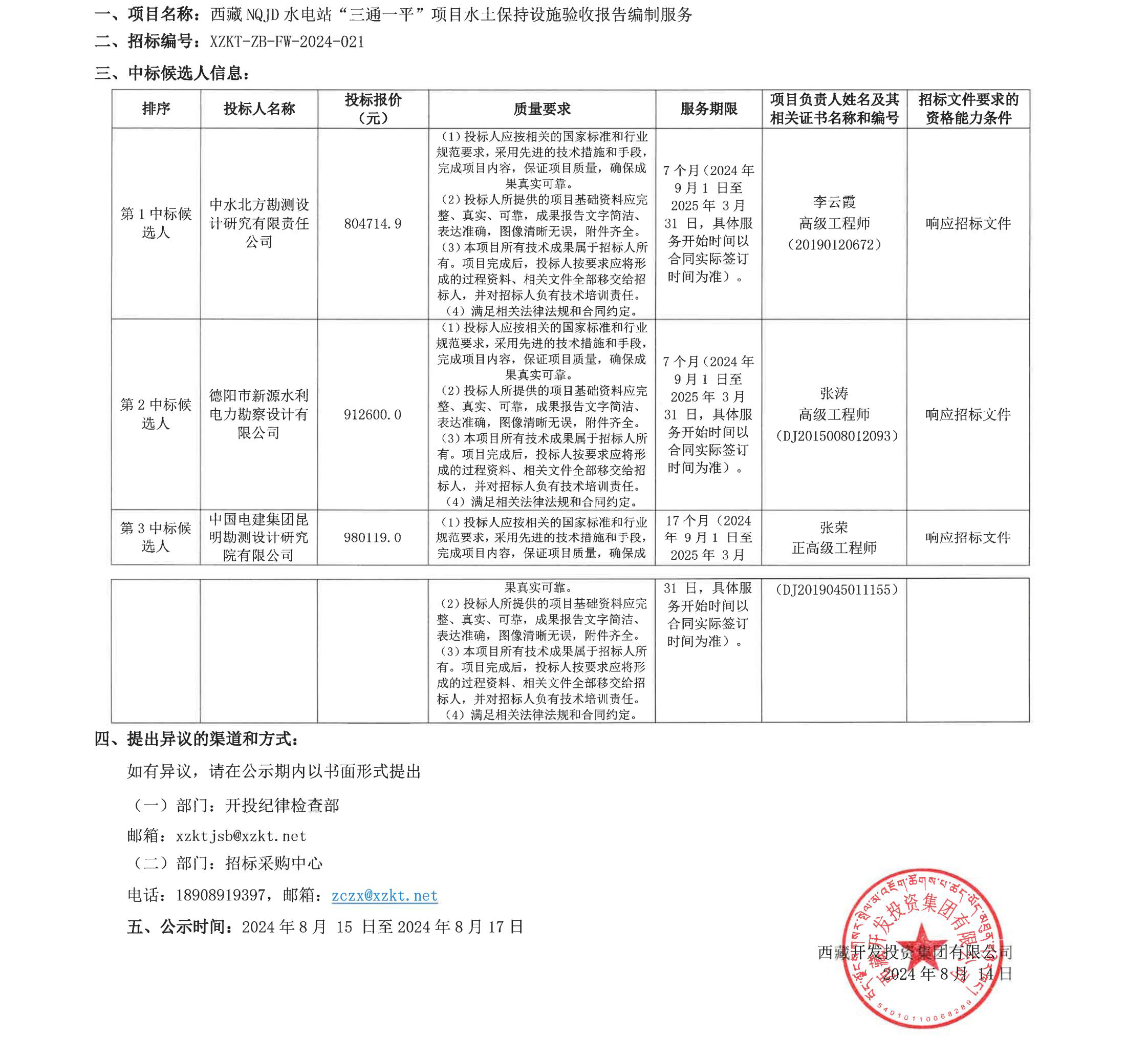 中標候選人公示
